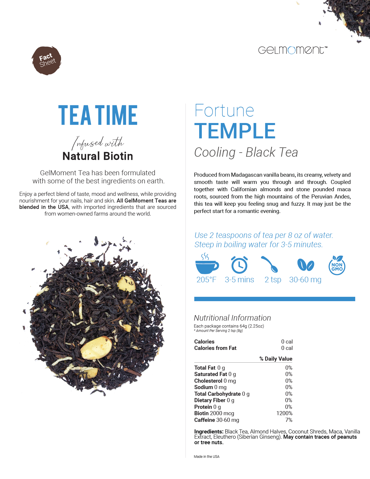 Produced from Madagascan vanilla beans, its creamy, velvety, and smooth taste will warm you through and through. Coupled together with Californian almonds and stone pounded maca roots, sourced from the high mountains of the Peruvian Andes, this tea will keep you feeling snug and fuzzy. It may just be the perfect start to a romantic evening.